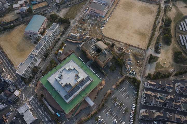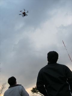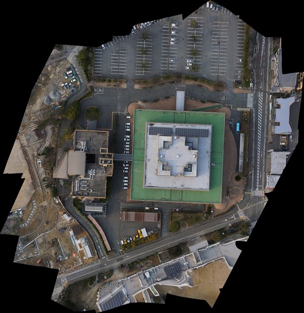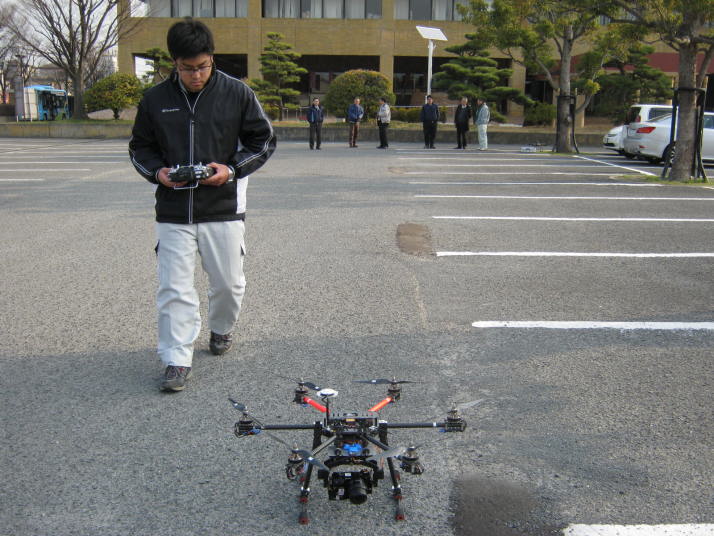 平成27年2月 T市役所庁舎及び駐車場のオルソ画像作成のため空撮を行いました。当日はデモンストレーションを兼ねたフライトでしたので、職員様とマルチコプターから送信されるリアルタイムな画像を地上モニターで確認しながら空の世界を楽しみました。